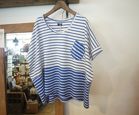 ゆったりとした、バイカラーボーダーTシャツ。ポケットがアクセントでかわいいです。