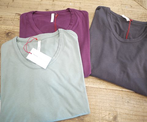 こちらのTシャツはモダール生地なのでとても気持ちよく、さらりとした肌触りです。