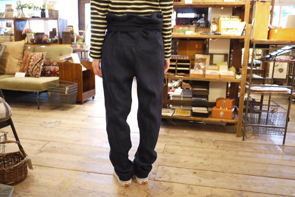 ウエストのリボンを巻いて履くタイパンツ風のデザインです。