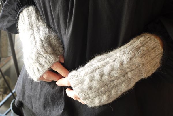 今日はあたたかいアルパカウールが使われている指なしグローブの紹介です。