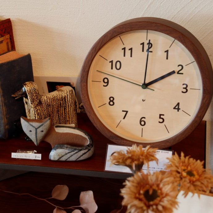 木製の文字盤が素朴でやさしい雰囲気。ちょっとレトロな感じがどこか懐かしい家庭の空気感を