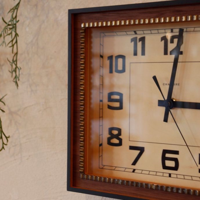 真鍮のモールを組み合わせたヴィンテージ感漂うスクエアの掛け置き兼用時計。